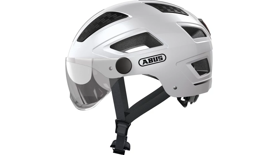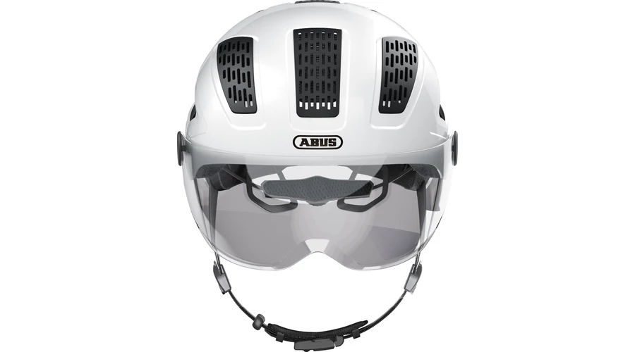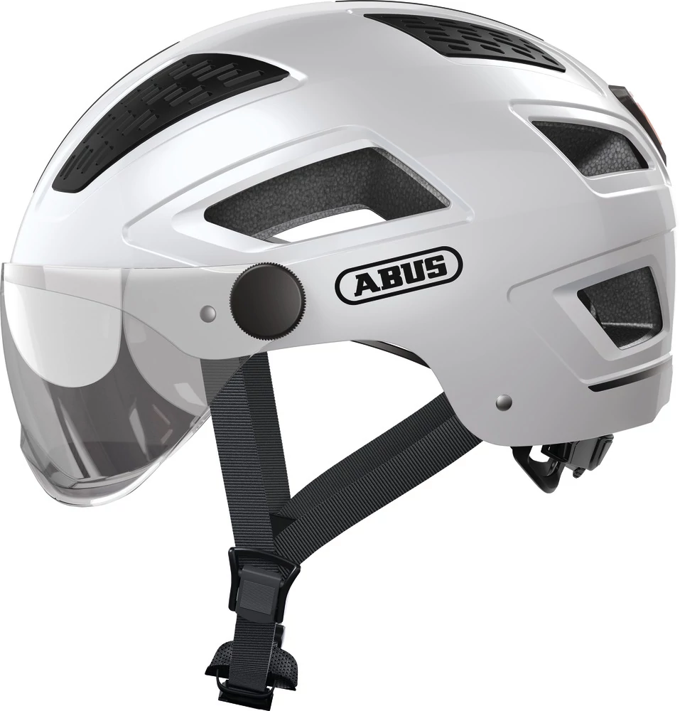 ABUS kerékpáros városi sisak Hyban 2.0 ACE, ABS, beépített átlátszó szemüveggel, polar white, M (52-58 cm)