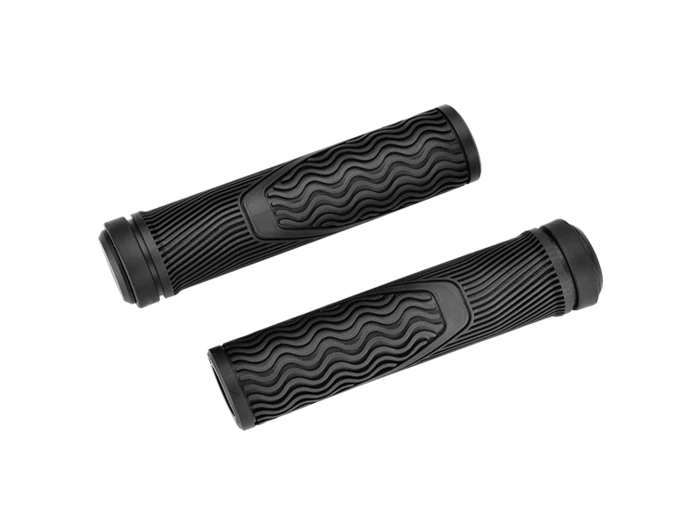 Hullám mintás thermoplasztikus gumiból készült markolat.Kiszerelés: párSzín: feketeHossz: 128 mmRögzítés: normálKormánymarkolat anyaga: gumiTenyértámaszos: nemIntegrált kormányszarv: nincsPeremes: nem