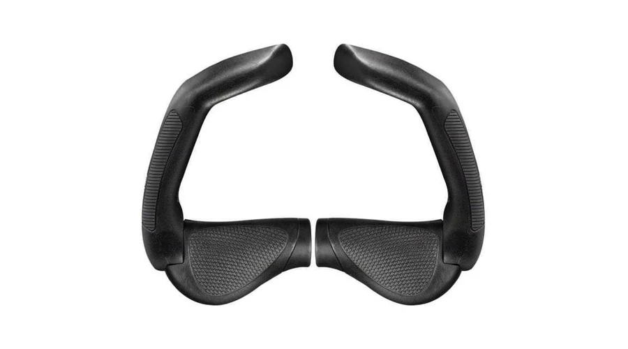 "Ergonómikus tenyértámaszos markolat trekking, MTB maraton és városi használatra. Ergon GP-5 (korábbi GC3) markolat, hosszú (öt ujjas) magnézium szarvval. Csúszásmentes gumi markolattest 40% parafával és puha tenyértámasz rész. A tenyértámasz megfelelően beállítva nem engedi megtörni a csuklót, ami megakadályozza a csuklóalagút-szindróma vagy az orsóideg-gyulladás kialakulását.