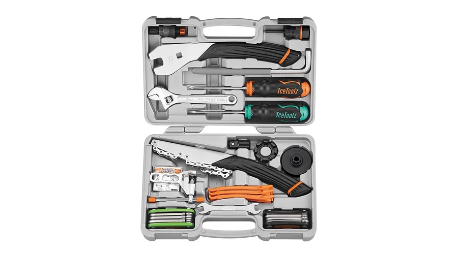 - Szerszámszabvány: 12 körmös kazettaleszedő, imbuszkulcs 2 mm, imbuszkulcs 2.5 mm, imbuszkulcs 3 mm, imbuszkulcs 4 mm, imbuszkulcs 5 mm, imbuszkulcs 6 mm, imbuszkulcs 8 mm, Láncos kontrakulcs, torxkulcs T25, torxkulcs T30, torxkulcs T40, csillagcsavarhúzó, gumileszedő, laposcsavarhúzó, láncbontó, küllőkulcs 13G, küllőkulcs 14G, küllőkulcs 15G, küllőkulcs 16G, imbuszkulcs 1.5 mm, torxkulcs T10, torxkulcs T15, torxkulcs T20, torxkulcs T27, villáskulcs 10 mm, torxkulcs T9, hajtókar lehúzó M8, hajtókar lehúzó M12/M15, Shimano HT2 - 44mm, villáskulcs 9 mm