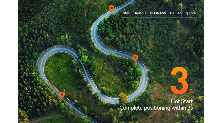 - Gyors és pontos helymeghatározás: A nagy teljesítményű öt műholdas GPS chip(GPS+BEIDOU+GLONASS+GALILEO+QZSS) gyors és pontos helymeghatározást biztosít, akár városban, akár hegyekben