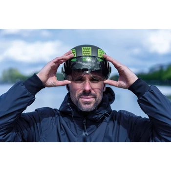 ABUS kerékpáros városi sisak Hyban 2.0 ACE, ABS, beépített átlátszó szemüveggel, signal yellow, M (52-58 cm)