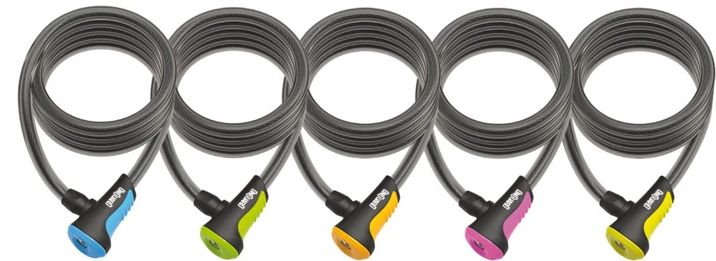 Neon sorozat 8156-os modell. Pink, narancs, sárga, zöld, kék színben. 180 cm hosszú, 12 mm vastag spirál kábel 2 kulccsal. Jav.fogy.ár/dbLakat Onguard Neon spirál kábel kulcsos180cmx12mm (5db:sárga,kék, zöld, narancs, pink)