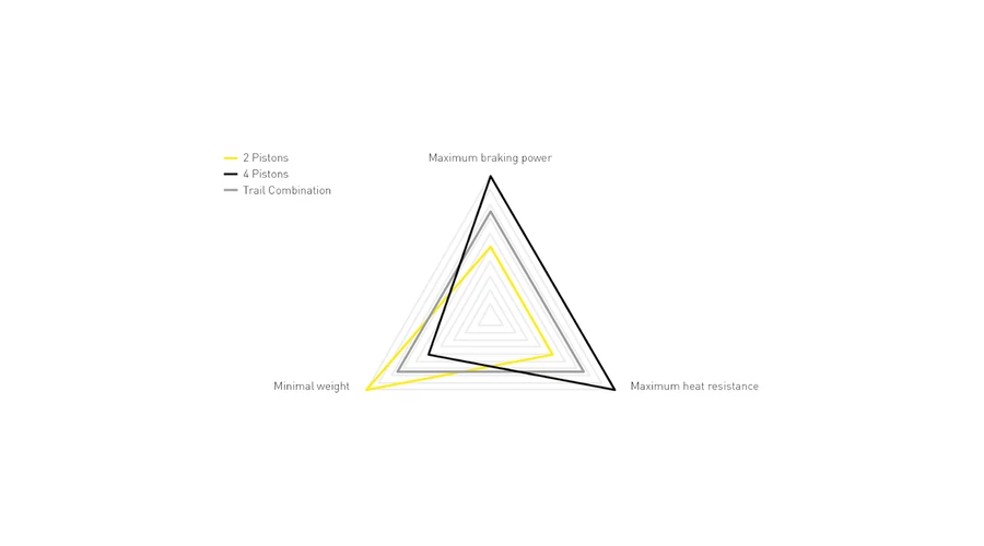 Az eredmény?! Felháborítóan alacsony súlya ellenére az MT8 a 2-dugattyús család legnagyobb fékezőerejét és stabilitását kínálja.
