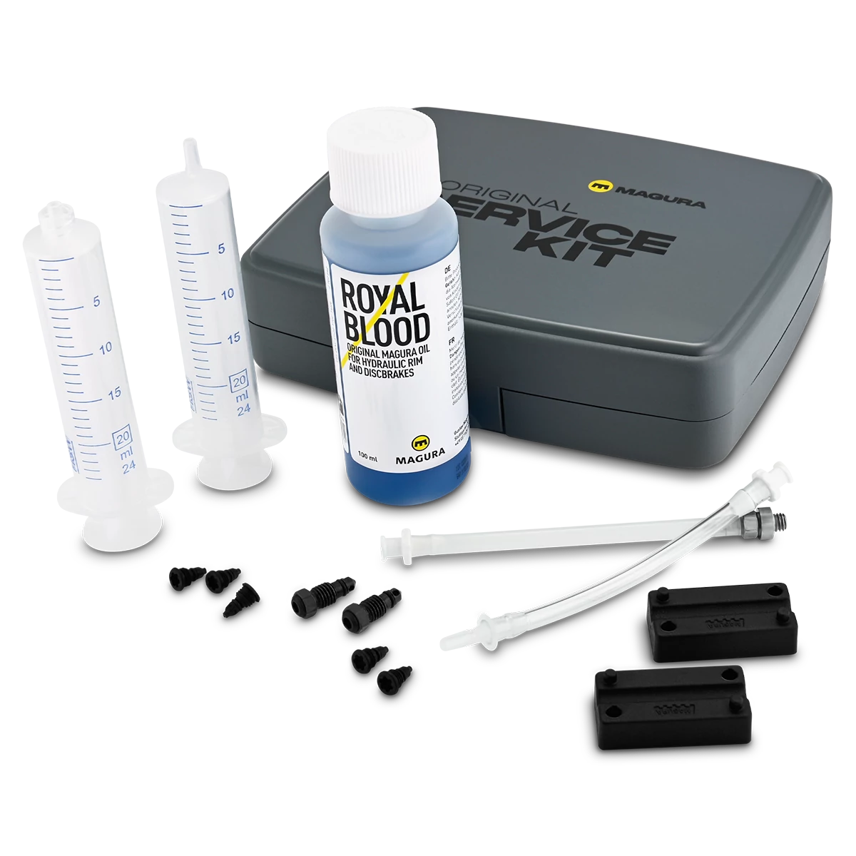 Ez az „all-in-one” (mindent egyben) szervizkészlet mindent tartalmaz, ami a MAGURA hidraulikus fékek karbantartásához szükséges.