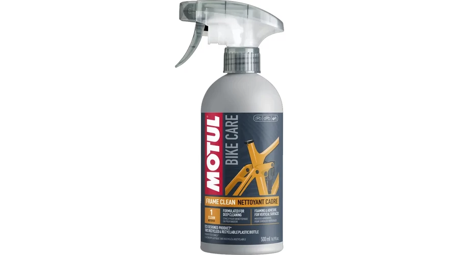 A MOTUL Frame Clean megkönnyíti a legmakacsabb szennyeződések alapos feloldását is, így tökéletesen megtisztítja a kerékpárvázakat, miközben teljesen biológiailag lebomlik. Alkalmas porszórt felületekre, valamint sokféle alkalmazásra, beleértve a legérzékenyebb anyagokat is, mint például szénszál, lakk, króm, festékek és műanyagok. Alkalmas hagyományos és elektromos kerékpárokhoz.