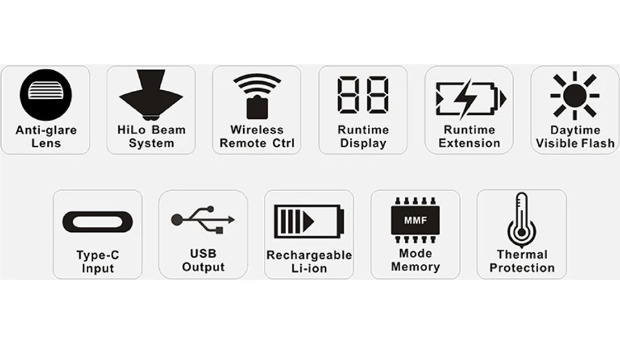 Anti-glare (tükröződésmentes) optikai lencse az országúti kerékpáros üzemmódhoz, hogy a többi közlekedő elvakítását csökkentse, emellett közeli és széles látótávolságú fényt, illetve távolsági reflektorfényt biztosítson.