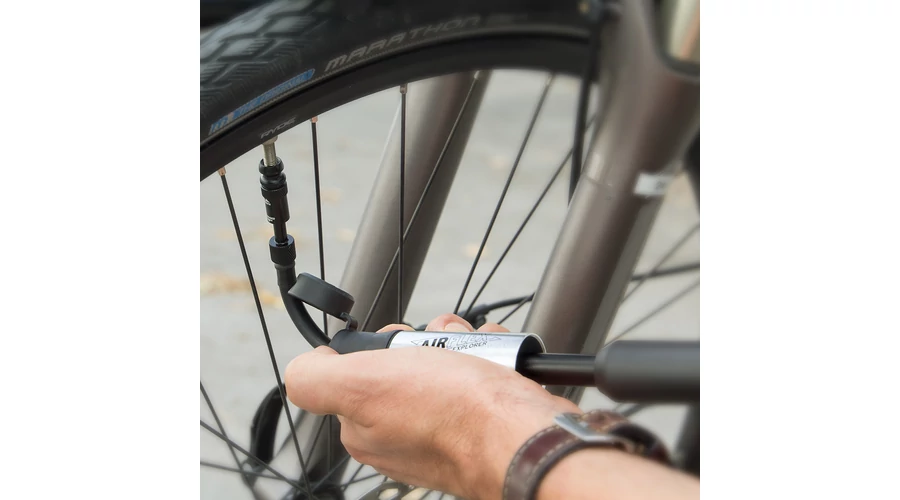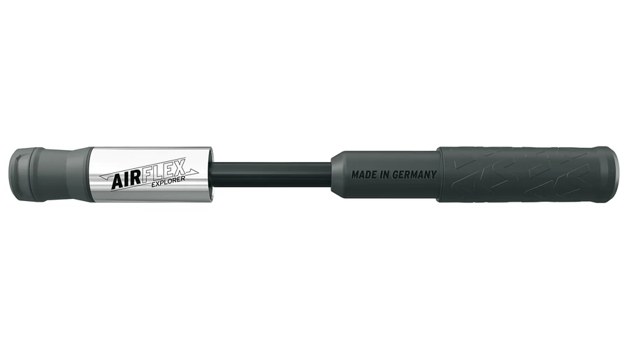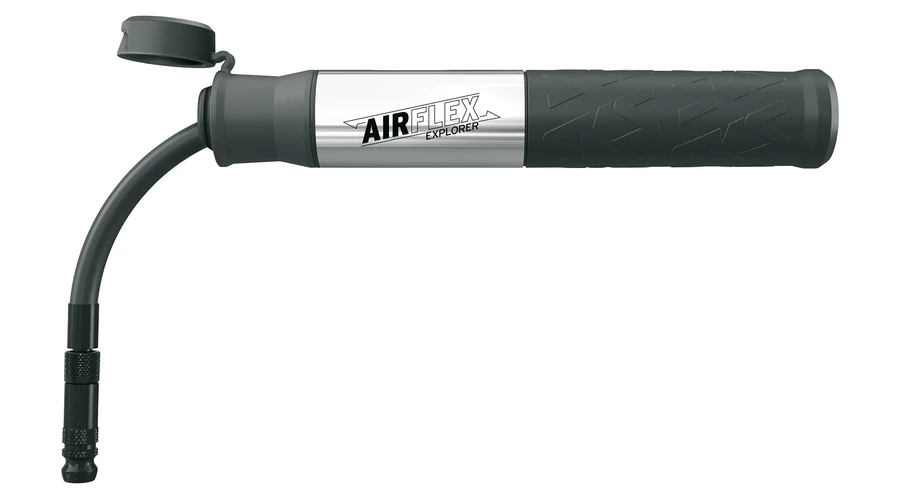 Egy kis pumpa nagy hatásfokkal. Az SKS-Germany Airflex minipumpája egyet jelent a kényelmes pumpálással. A pumpatestben rejlő tömlőt porvédő kupak védi, és rácsavarva az AV/SV szelepre légmentesen zár. A pumpa maxiumum 5 bar/73 psi nyomásra képes. A pumpa markolata puha összetételű, így kényelmes és jól tapad. A pumpatest alumínium és műanyag kombinációja dombornyomott SKS logókkal – minden kerékpáros kötelező kelléke, aki egy kicsit is szereti a szép dizájnt. A pumpa belső kamrája karbonnal megerősített poliamidból készül – ez erősebb, mint a hagyományos műanyag, így vékonyabb oldalfalat tesz lehetővé, ennek eredményeként pedig az Airflex egy könnyűsúlyú társad lesz a túráidon. Pumpatartó is jár hozzá.