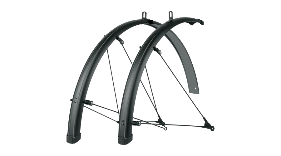 Most még szélesebb, hosszabb és stílusosabb! Az SKS matt fekete-szürke csíkos BLUEMELS STRIPES sárvédő szettje csíkos megjelenésben nagyszerű megjelenést kölcsönöz a kerékpárnak.