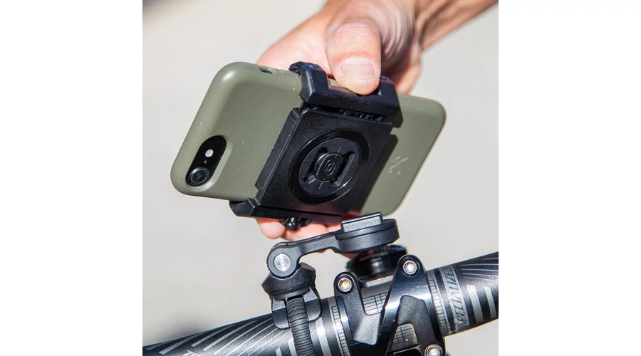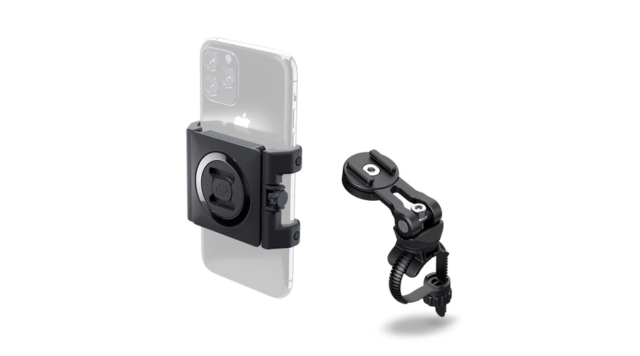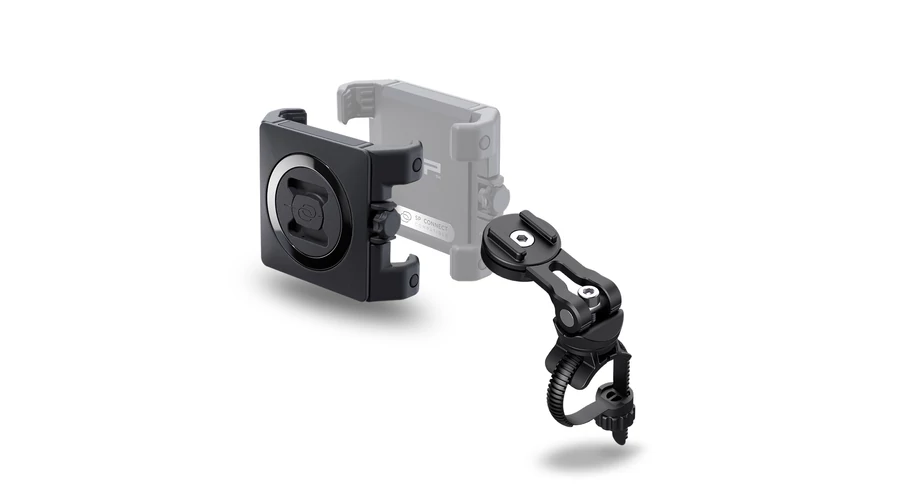 Az SP Connect™ univerzális okostelefon tartó segítségével másodpercek alatt rögzítheti telefonját kerékpárjához. Rögzítse a tartót a két rögzítési lehetőség (állítható karral vagy anélkül) egyikével a kormányra vagy a kormányszárra. A telefont rá kell helyezni a tartóra és az óramutató járásával megegyező irányba 90 fokkal elforgatni.