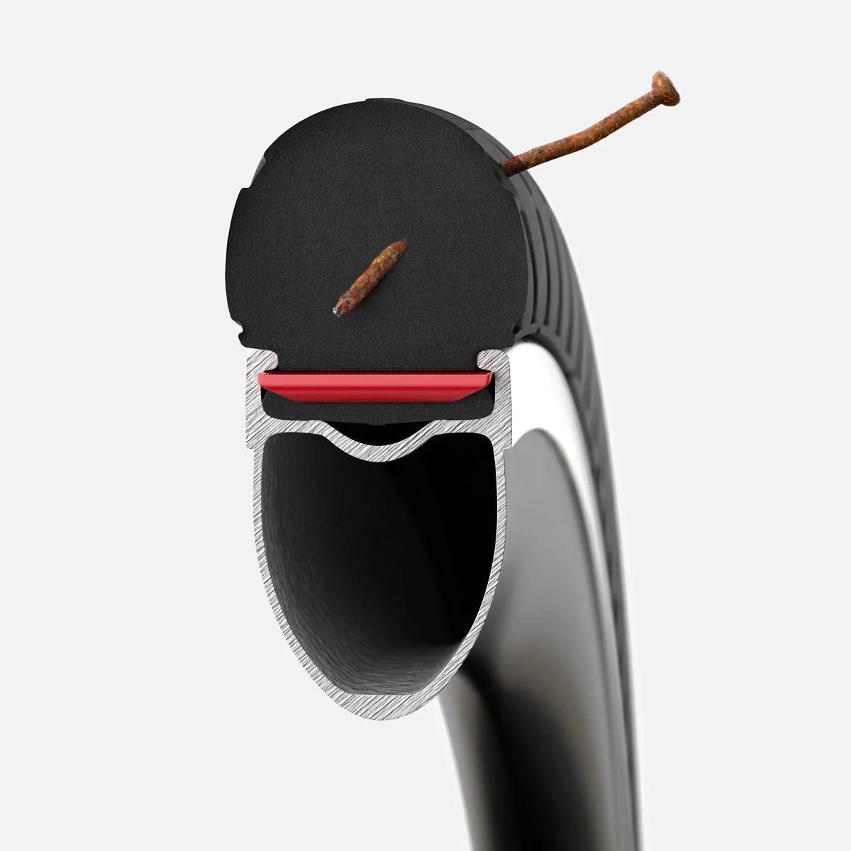 Levegő nélküli, tömör gumiabroncs. Súlya: 620g